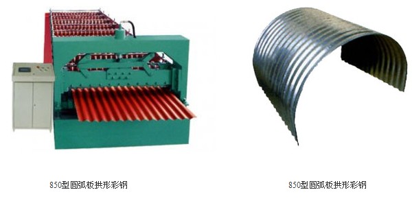 850型圓弧板拱形彩鋼機可根據(jù)生產(chǎn)需要生產(chǎn)各種不同外觀的屋面板,且成品率高。